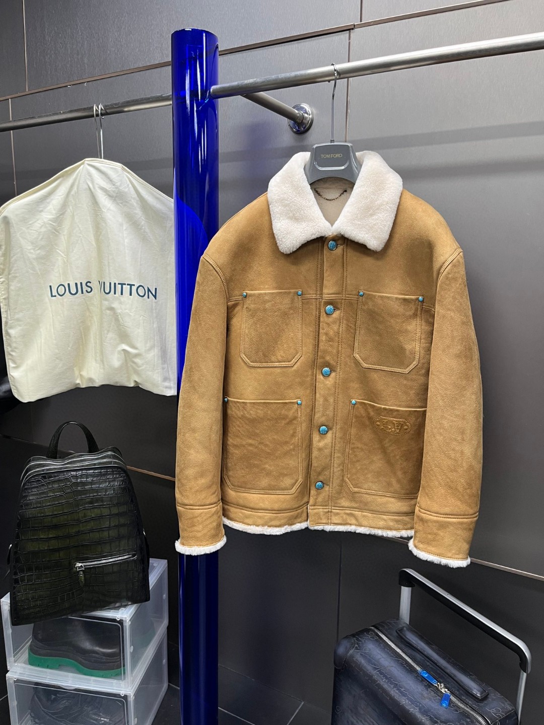 LOUIS VUITTON 路易威登 LV 皮毛一体翻领夹克 皮衣 外套 保暖 长袖 驼色 1AFXJ3