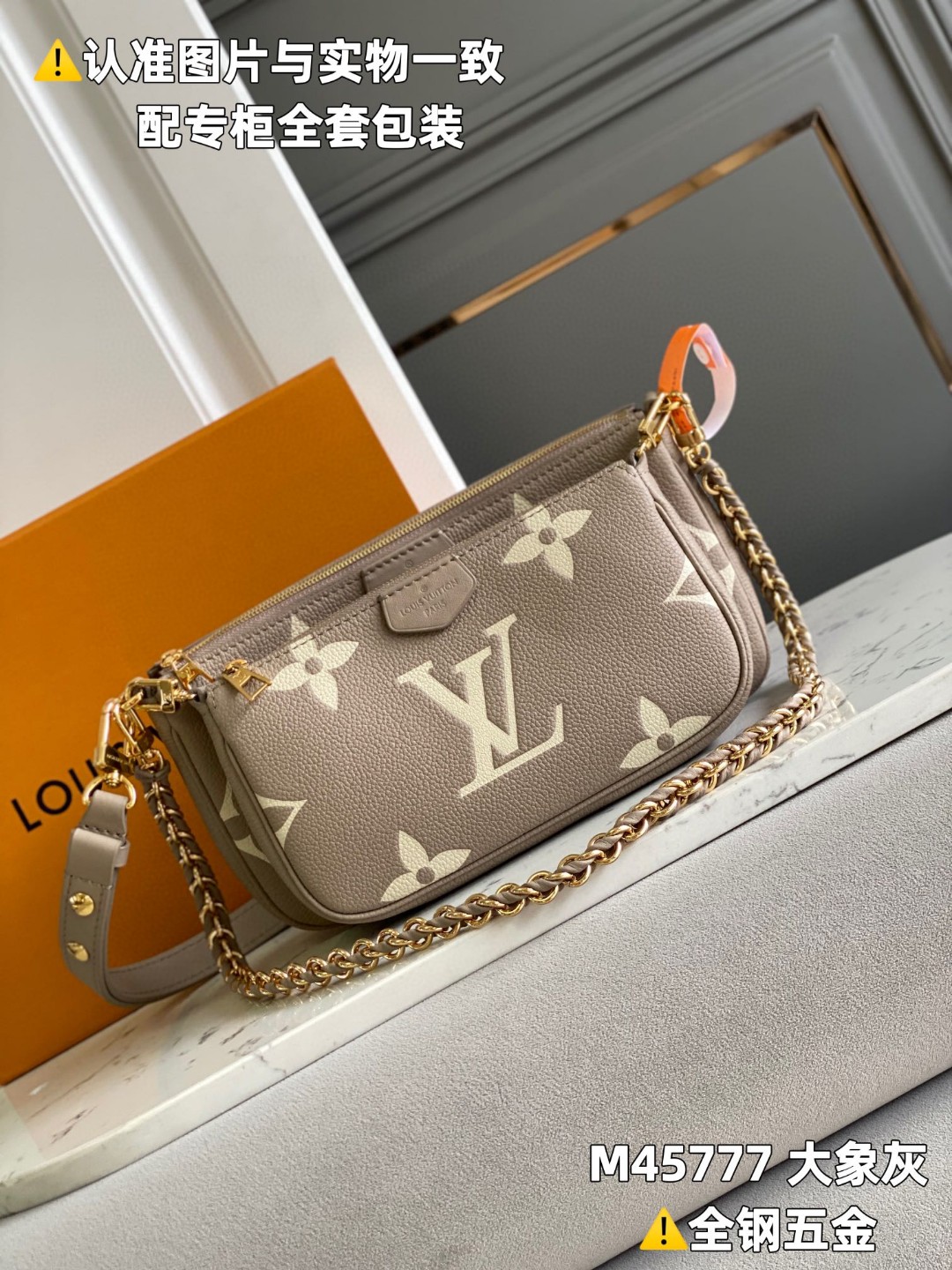 LOUIS VUITTON 路易威登 Multi Pochette 压纹老花链条软粒面牛皮革二合一 腋下包 斜挎包 单肩包 手提包 大象灰 M45777