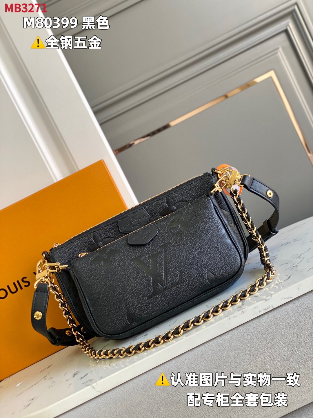 LOUIS VUITTON 路易威登 Multi Pochette 压纹老花链条软粒面牛皮革二合一 腋下包 斜挎包 单肩包 手提包 黑色 M80399