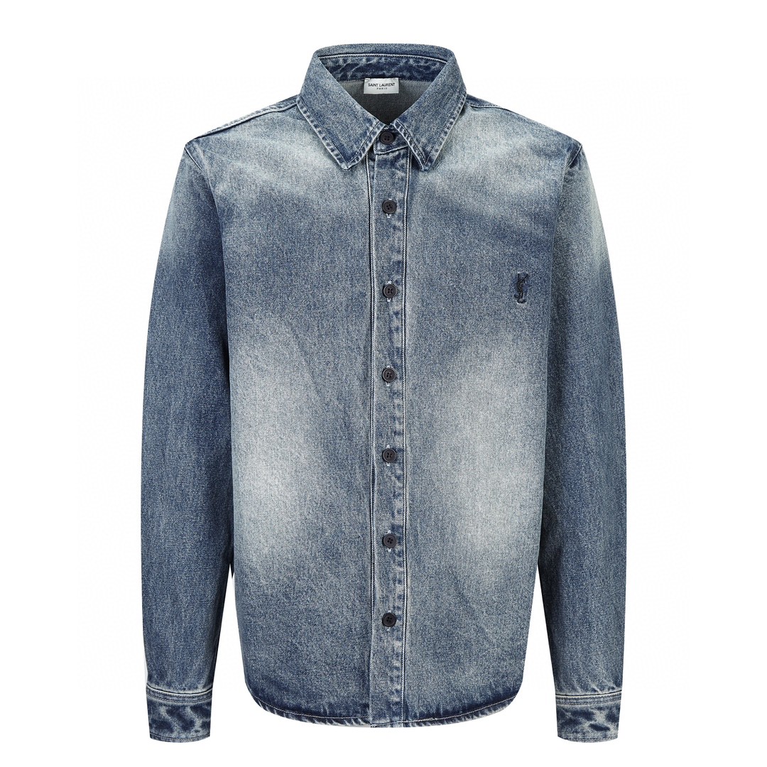 SAINT LAURENT YSL 圣罗兰 FW23 字母Logo刺绣 衬衫 牛仔衬衫 牛仔衣 秋冬款 蓝色
