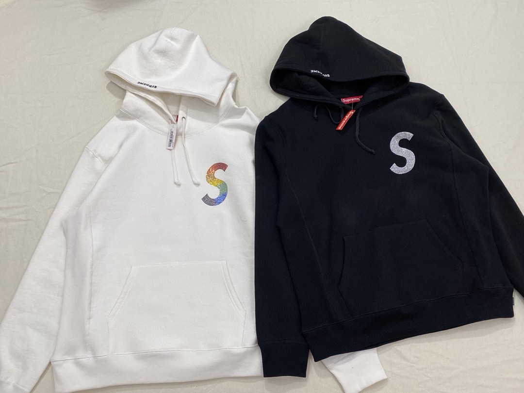 Supreme Week 6 Swarovski 联名款 S Logo Hooded Sweatshirt S 水钻徽标 黑色 白色 连帽卫衣 加绒 宽松 男女同款 SUP-SS21-583