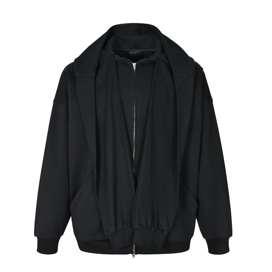 Balenciaga 巴黎世家 拼接假两件刺绣字母logo拉链连帽卫衣 外套 长袖 秋冬 黑色