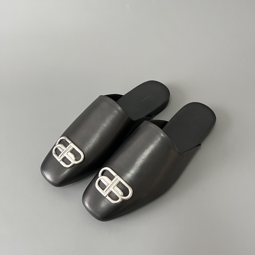 Balenciaga COSY 巴黎世家 低筒 小牛皮 平底 速干包头拖鞋 凉拖 男款 黑色 590659WA7211081