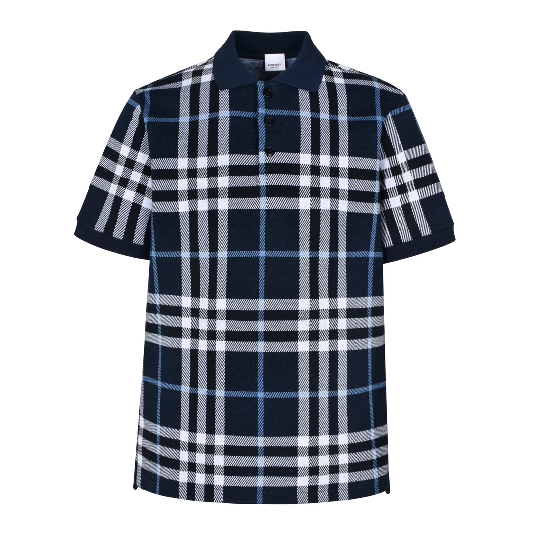Burberry 巴宝莉蓝格纹针织polo衫 短袖 T恤 夏季蓝色-B0