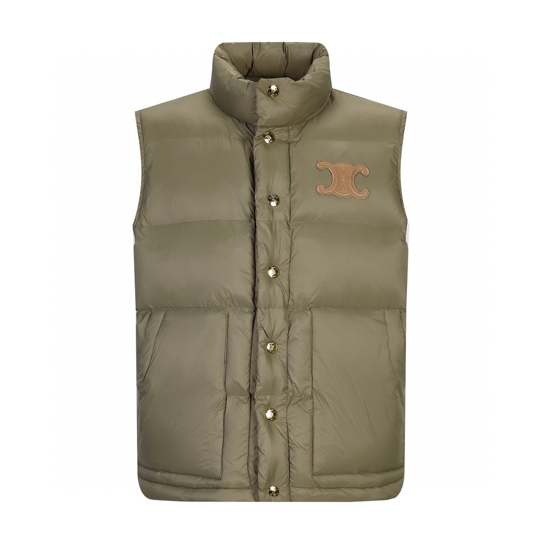 CELINE 赛琳 纯色 Logo 刺绣单排扣无袖马甲 外套 羽绒服 褐色 2W987906V-02KK