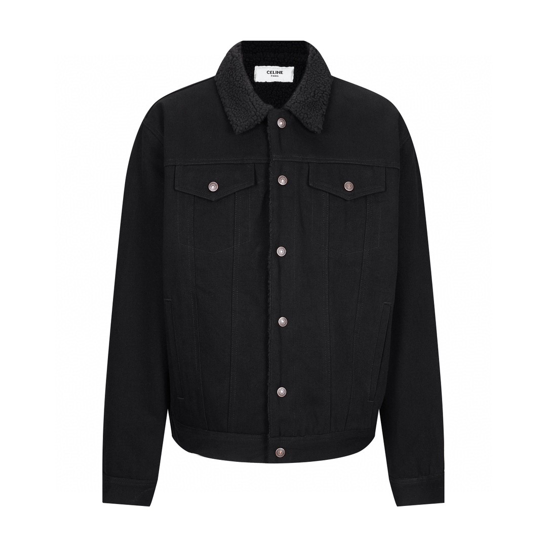 CELINE 赛琳 FW22 背后水钻字母logo羊羔毛牛仔外套 牛仔衣 长袖 外套 秋冬款 深灰色 2Q523085T-38TK