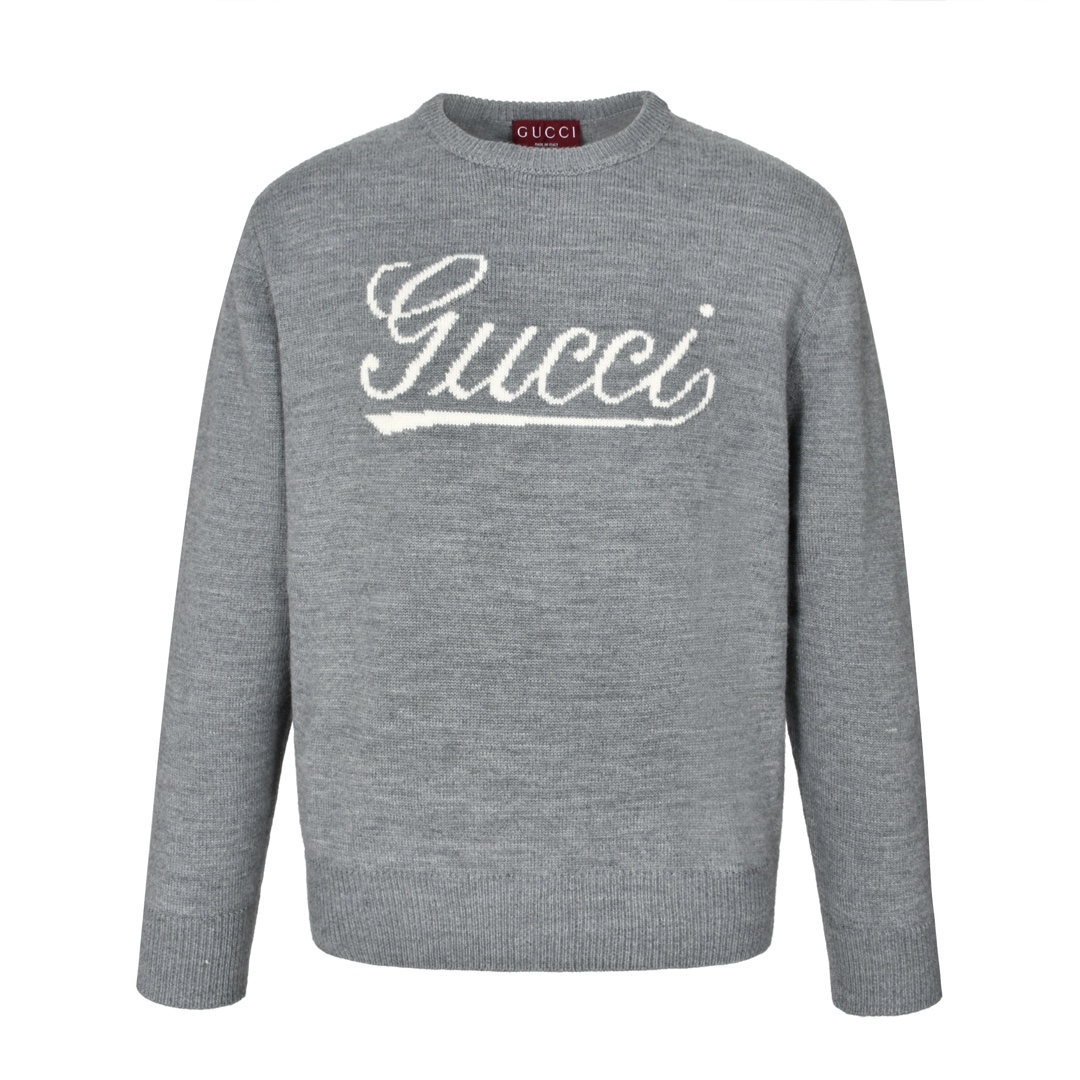 GUCCl 古驰 签名嵌花圆领毛衣 外套 长袖 灰色 B0 795347-XKD74-1423