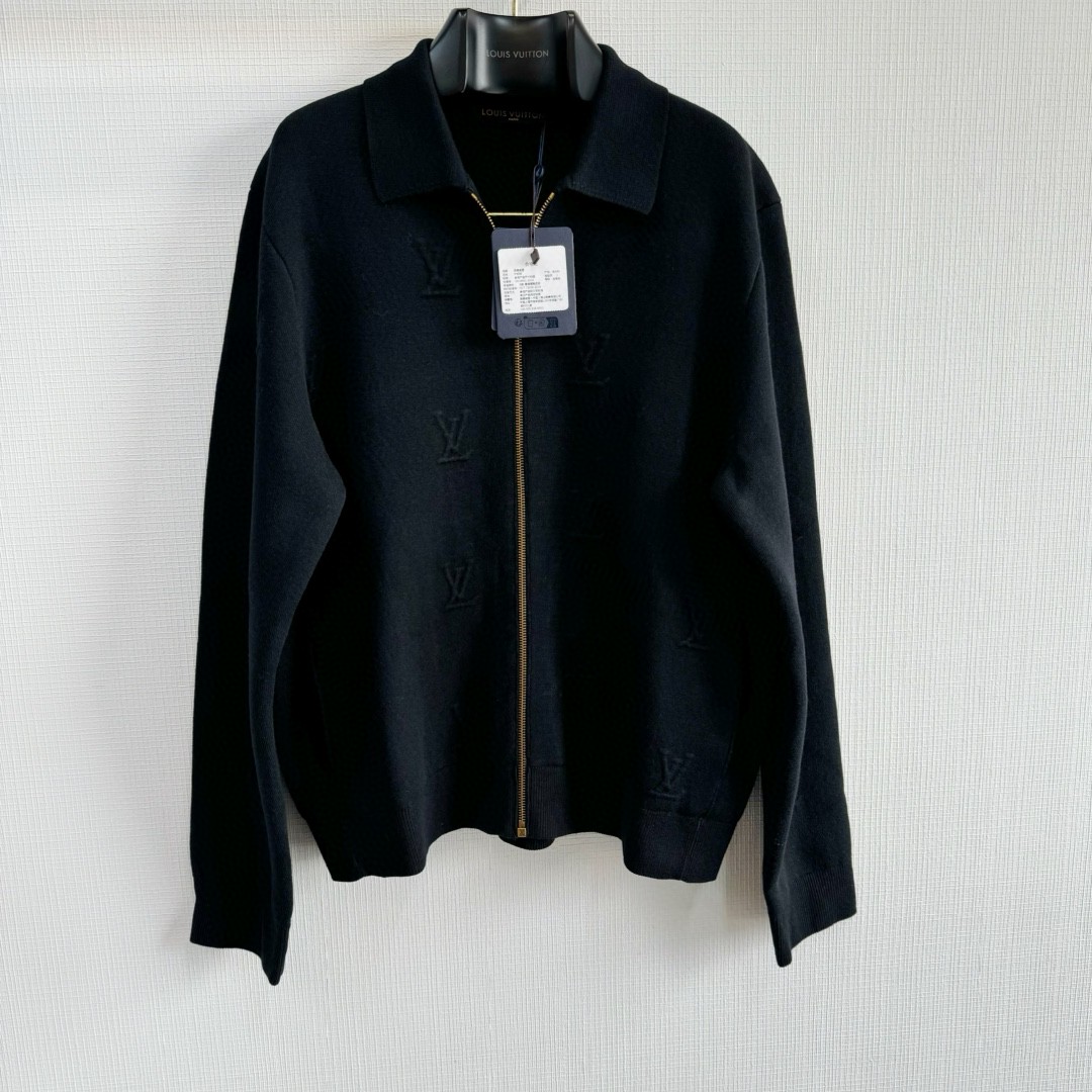 LOUIS VUITTON 路易威登 压花毛织拉链外套 毛衣 针织衫 黑色 C0