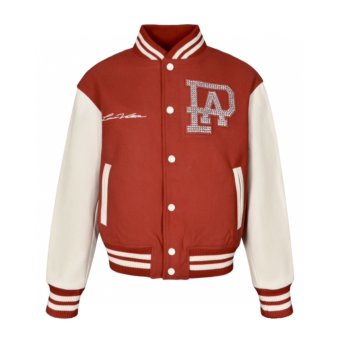 LOUIS VUITTON 路易威登 字母刺绣logo烫钻珍珠拼接皮袖棒球服 夹克 长袖 外套 秋冬款 红色 1AFIQ9