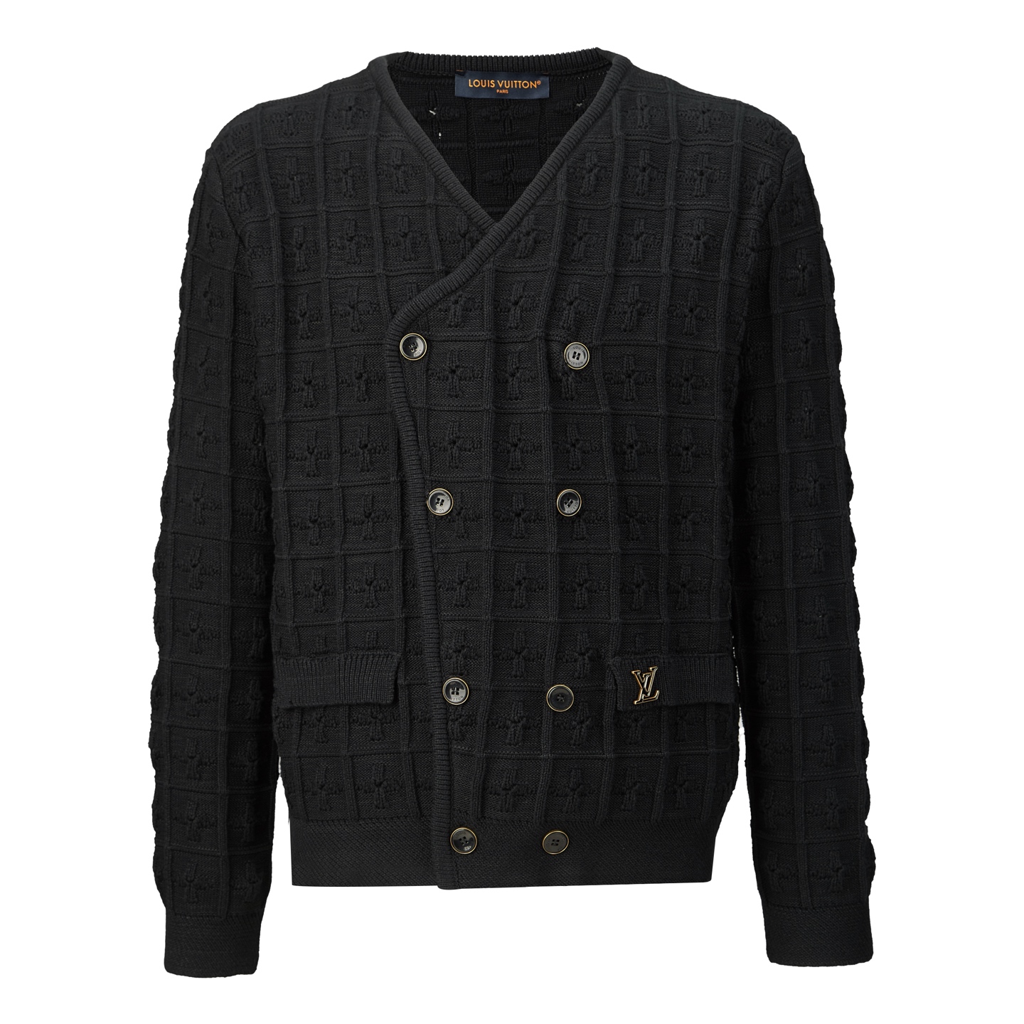 LOUIS VUITTON 路易威登 绞花字母logo双排扣针织开衫 毛衣 长袖 外套 黑色 B0 1AHVNI
