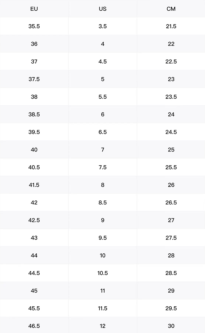 尺碼對照表
