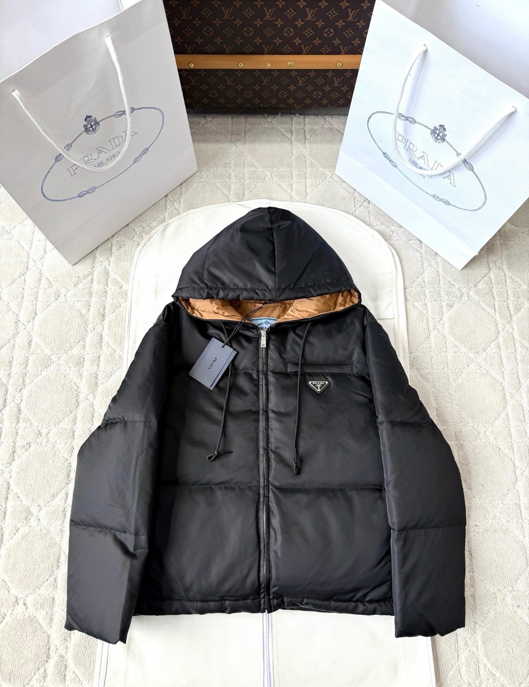 PRADA 普拉达 三角标拉链连帽羽绒服 夹克 外套 长袖 黑色 E2 29B408-1WQ8-F0002-S-AAO