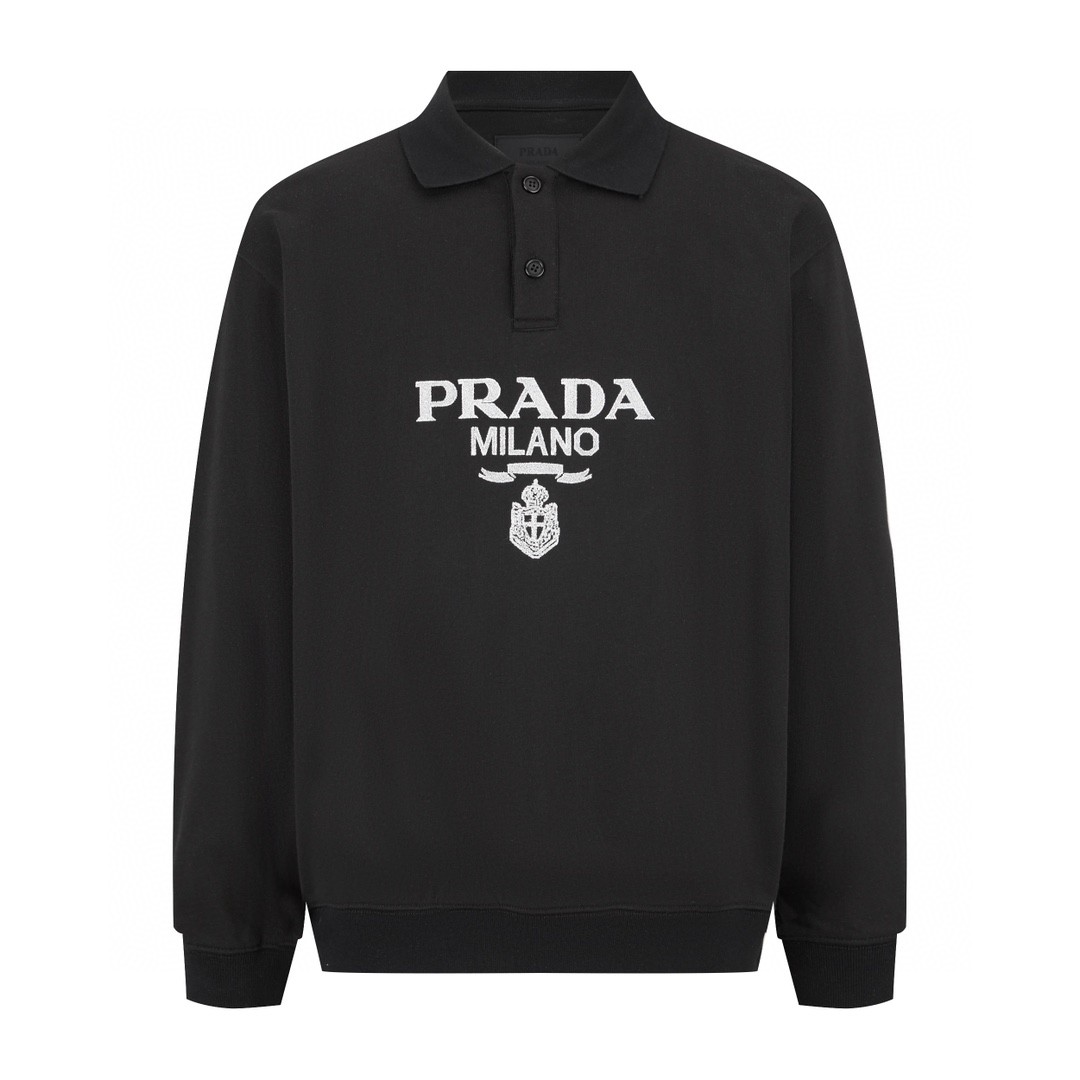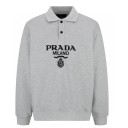 PRADA 普拉达 logo字母提花Polo领卫衣 圆领 长袖 灰色 黑色 UJL77B-1Y13-F0002-S-OOO