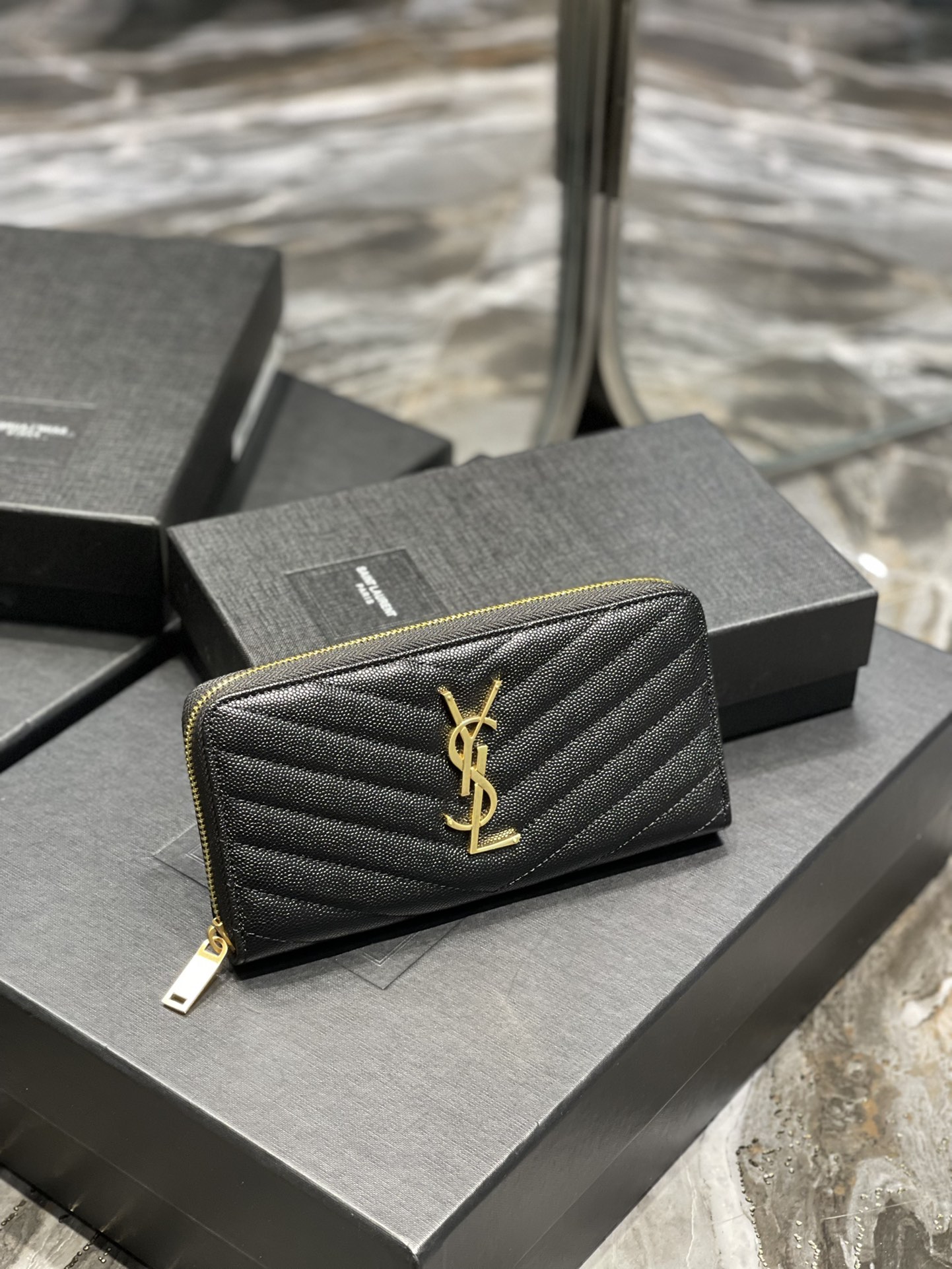 SAINT LAURENT 圣罗兰 Monogram YSL Logo  皮革 钱包 长夹拉链  颗粒 多色  358094BOW011000