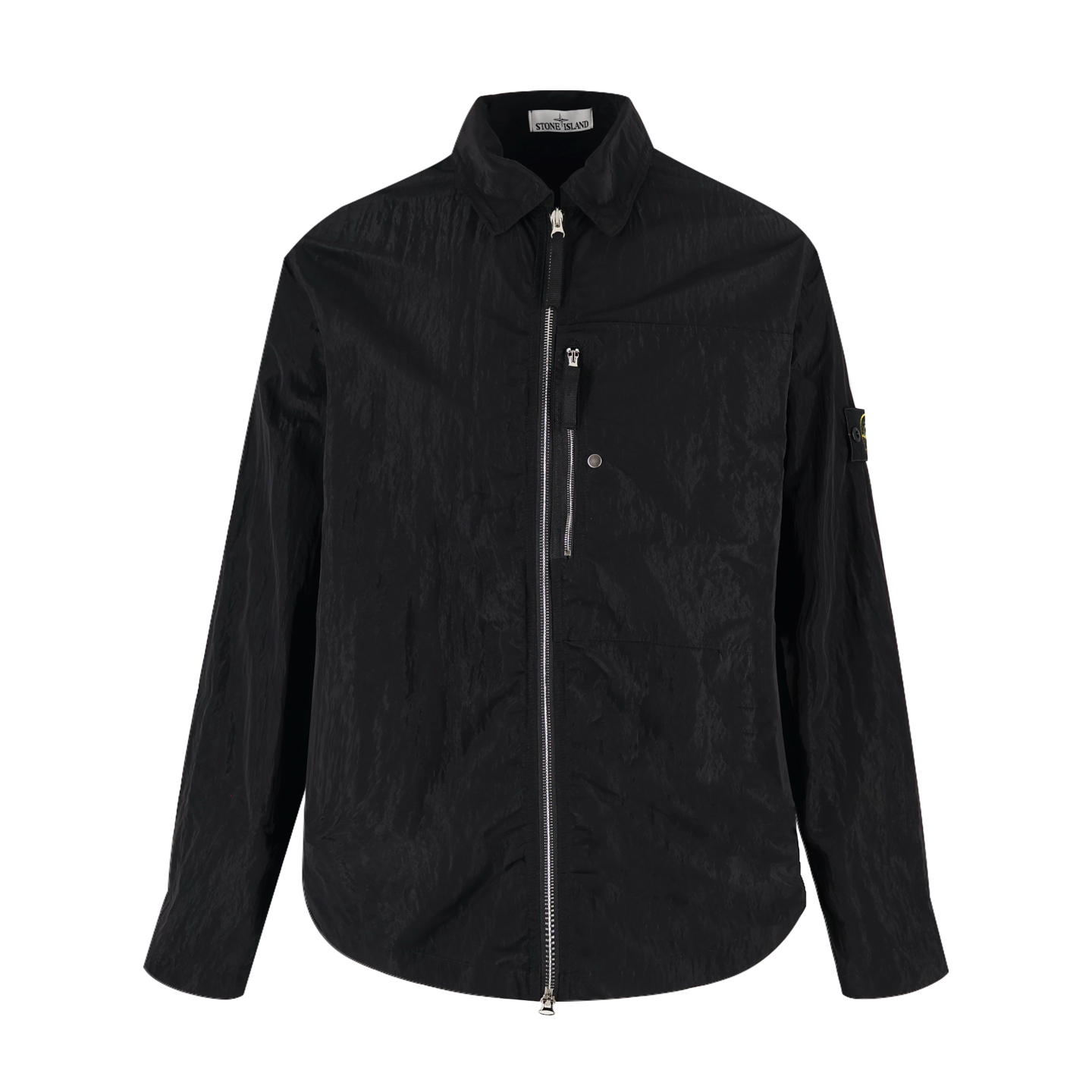 STONEISLAND SS25 Nylon Metal 石头岛 袖标 金属尼龙系列 纯色徽标贴片翻领单口袋拉链长袖夹克外套 男款 黑色B5 K1S151200005S0019V0029
