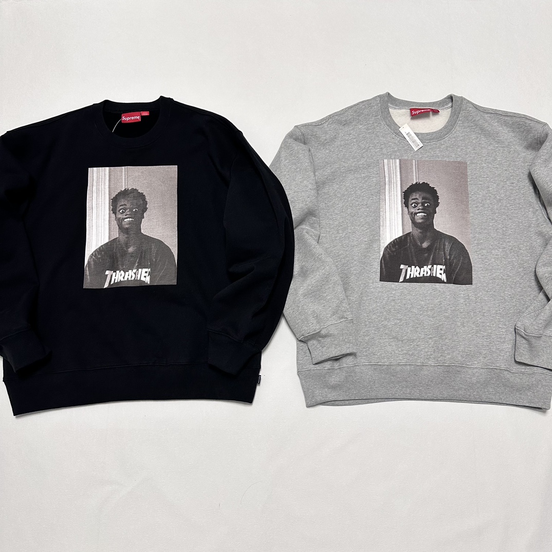 Supreme THRASHER FW24 WEEK6 Crewneck 圆领 人物 加绒 长袖卫衣 黑色 灰色 SUP-FW24-126