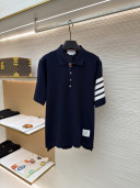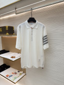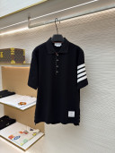 THOM BROWNE 珠地棉针织Polo衫 短袖 T恤 黑色 藏蓝色 灰色 白色 A5