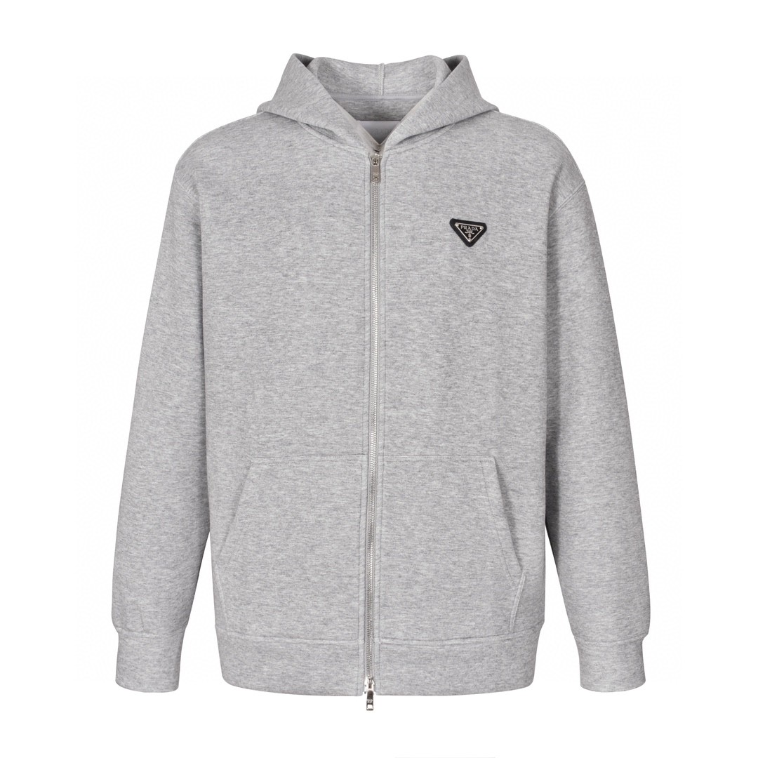 PRADA 普拉达 logo徽标拉链连帽卫衣 长袖 灰色 UADC-MJB3569-PTE003N