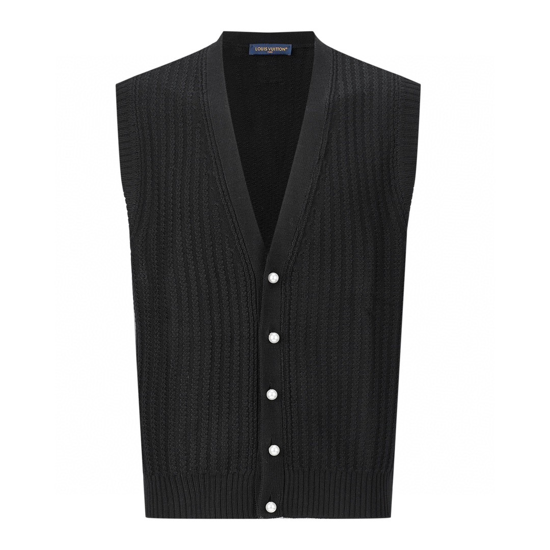 LOUIS VUITTON 路易威登 SS24 菲董联名系列纯色V领珍珠扣马甲 针织衫 背心 黑色 1AFIVD