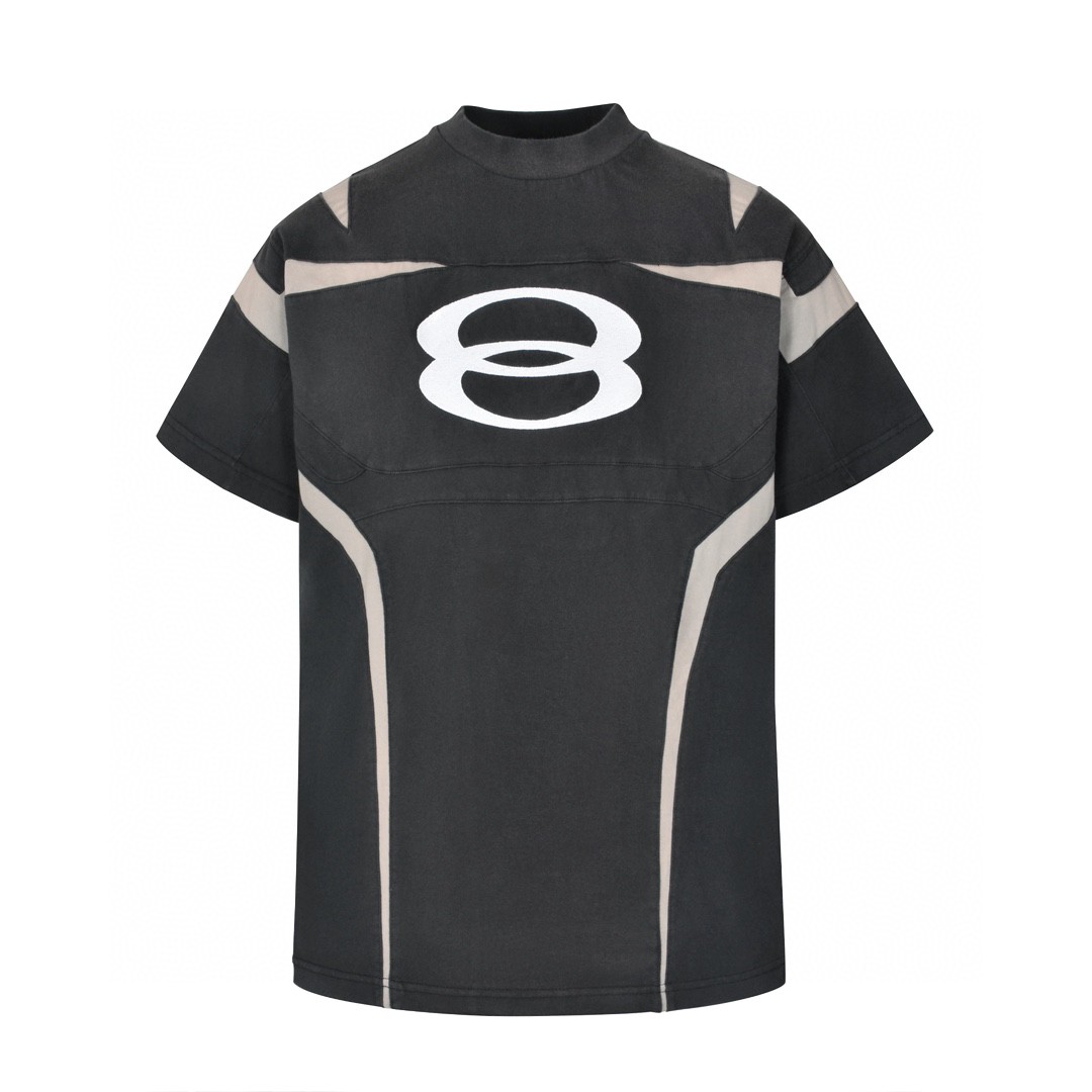 Balenciaga 巴黎世家 重工拼接双环字母logo刺绣短袖 T恤 圆领 短款 夏季 黑色