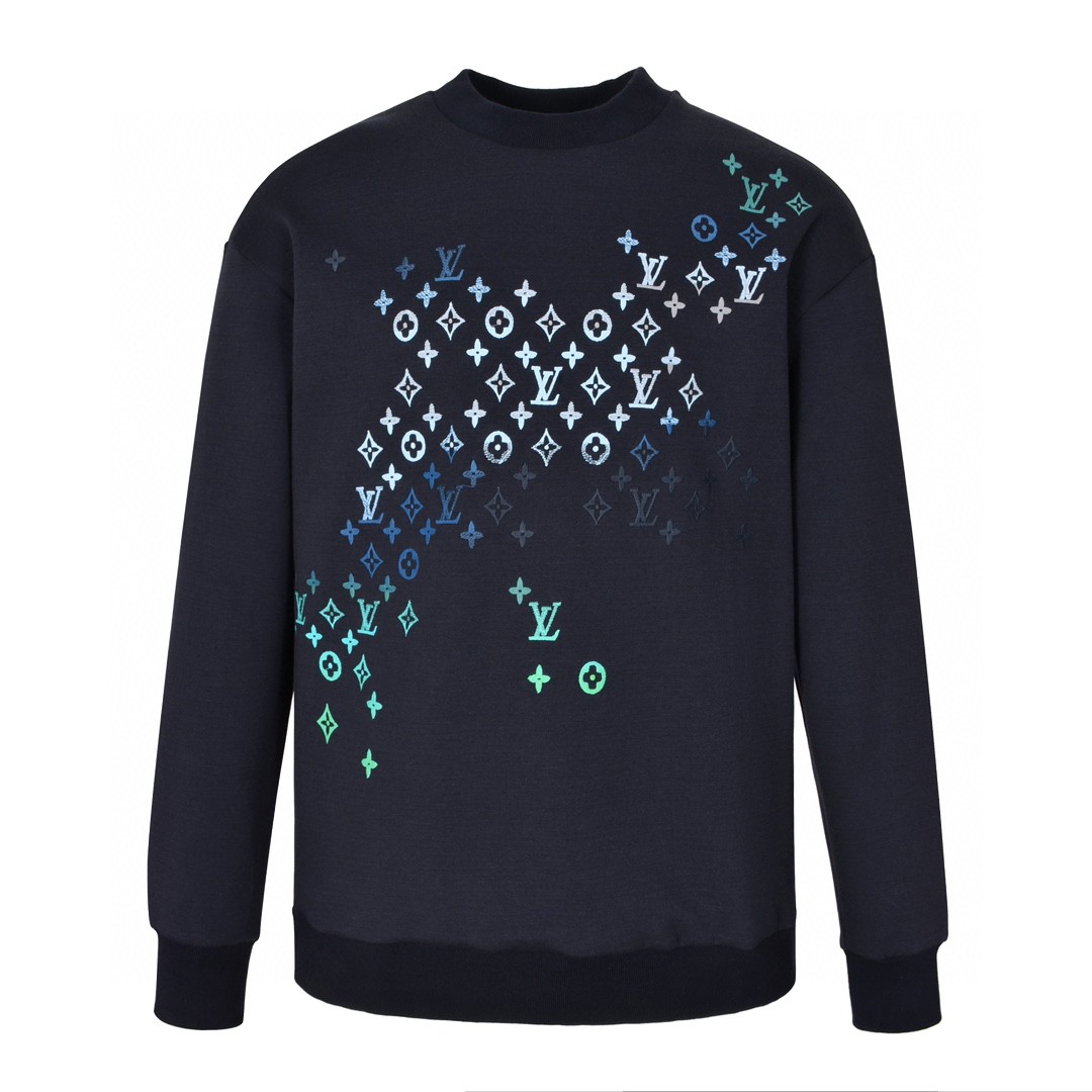 LOUIS VUITTON 路易威登 渐变刺绣圆领卫衣 长袖 秋冬款 黑色 1AFVBA