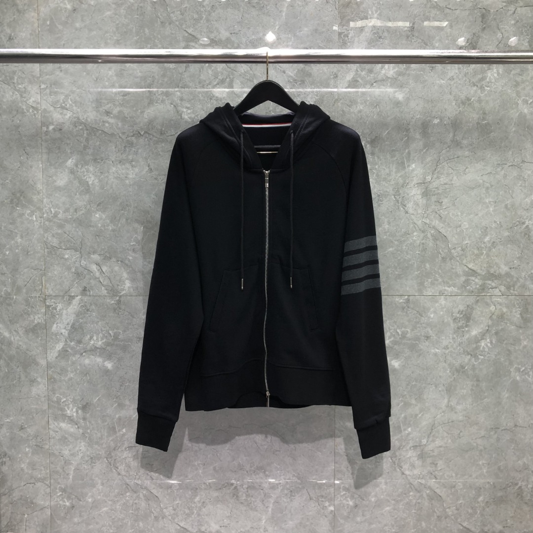 THOM BROWNE 经典四杠拉链连帽卫衣 长袖 黑色