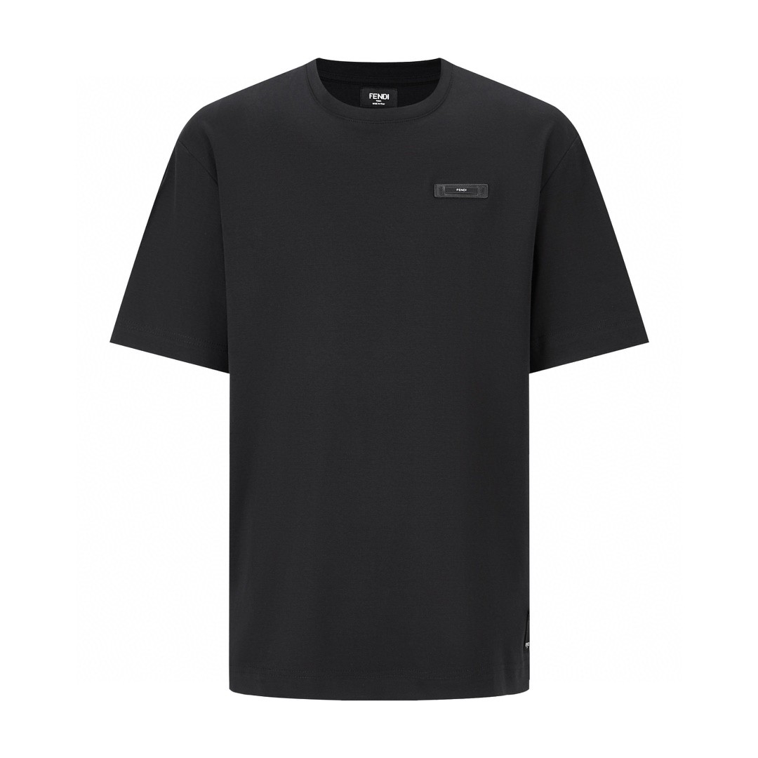 FENDI 芬迪 纯色徽标图案 圆领 T 恤 短袖 上衣 夏款 黑色 FY0936AQJEF0-QA1