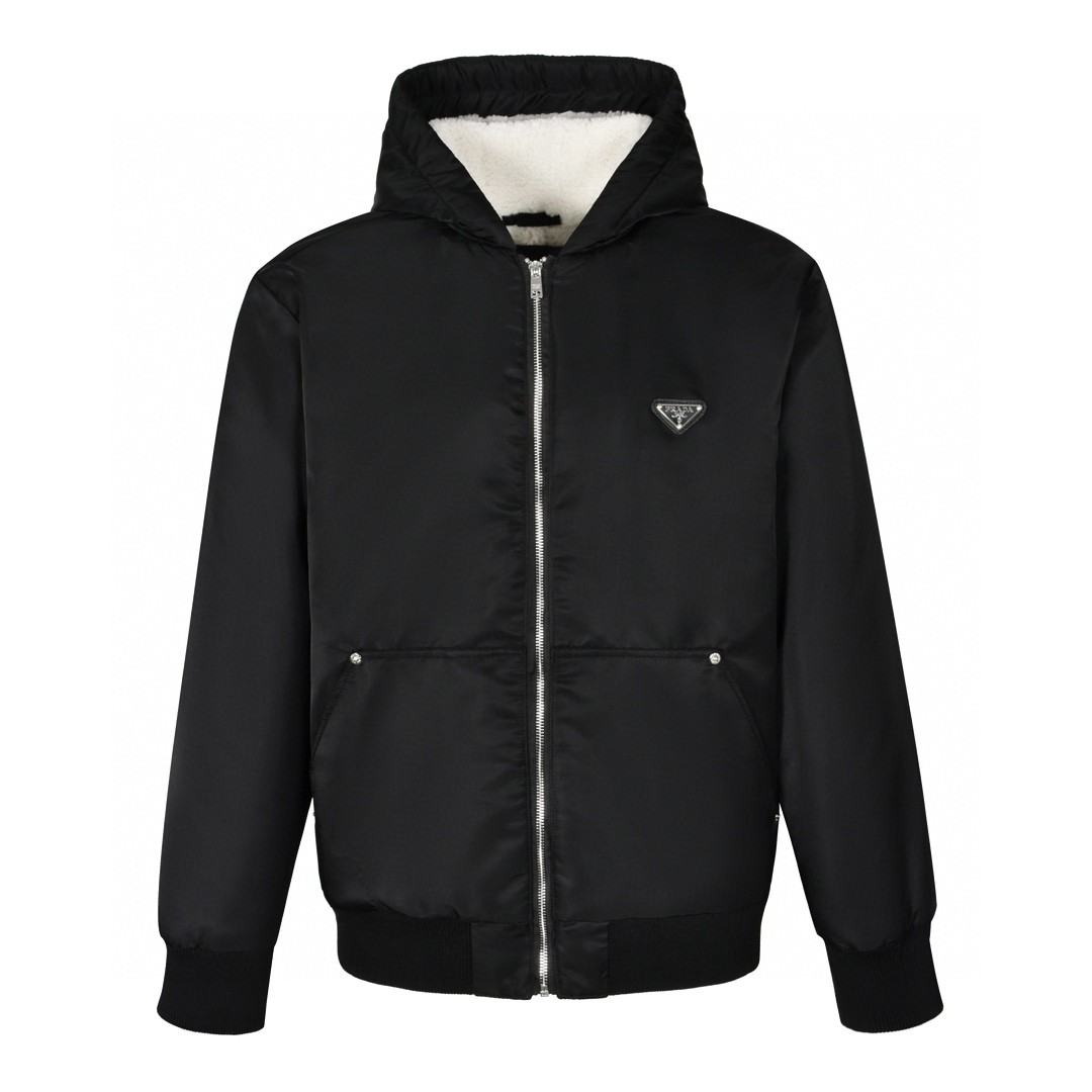 PRADA 普拉达 徽标羊羔毛拉链连帽夹克 外套 黑色 长袖 SGC5851WQ8-F0002
