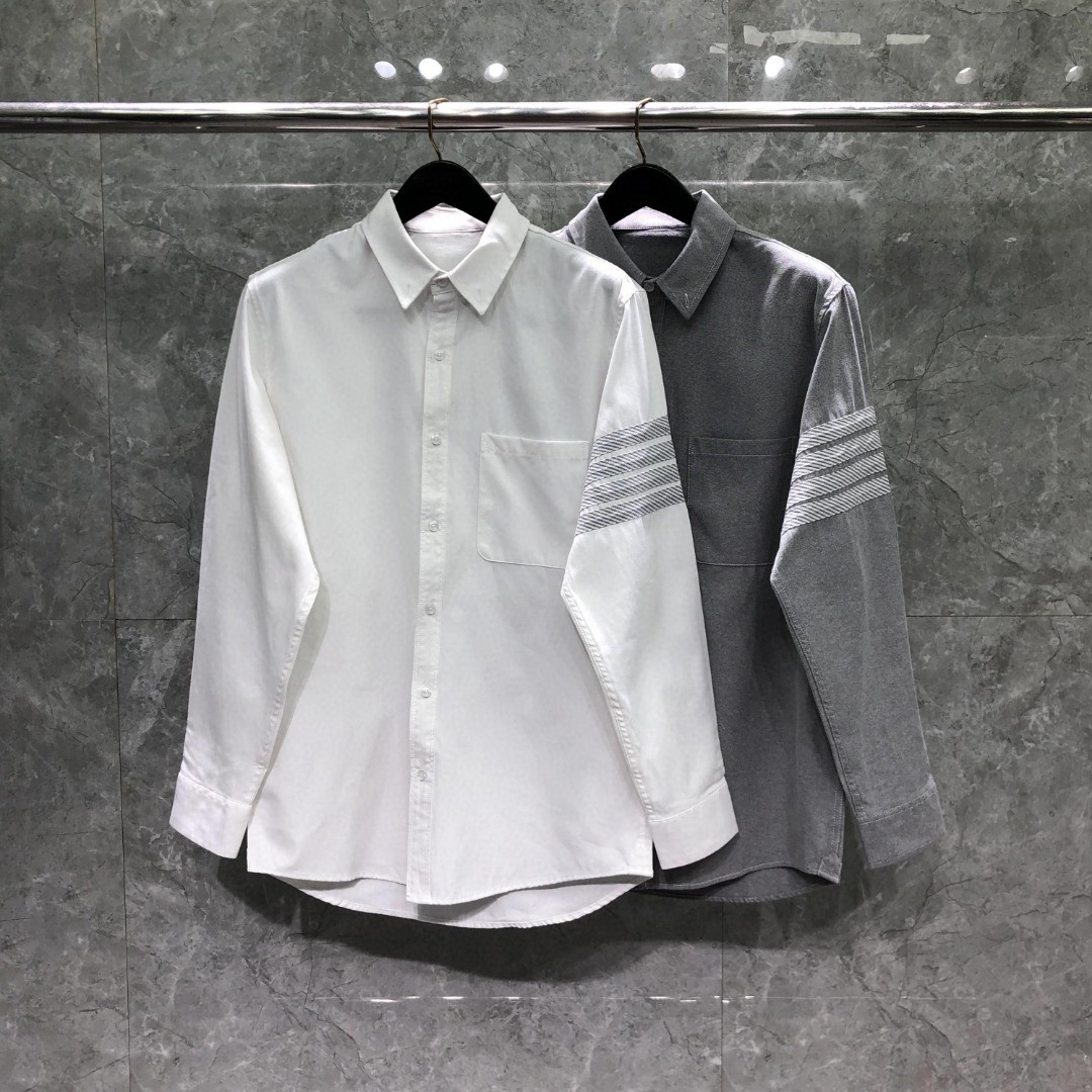 THOM BROWNE 灰色斜纹四杠单排扣衬衫 外套 长袖 白色 灰色