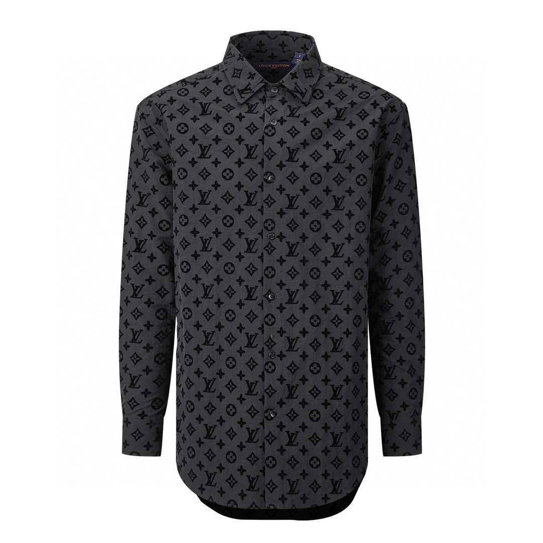 LOUIS VUITTON 路易威登 植绒满印logo印花单排扣衬衫 长袖 外套 黑色 1A979D