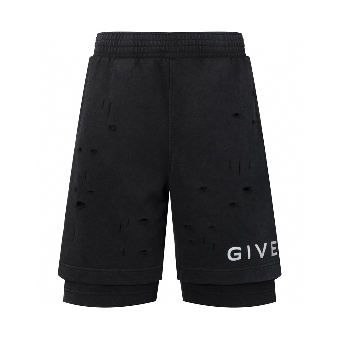 Givenchy 纪梵希 假两件破洞短裤 休闲裤 运动裤 黑色