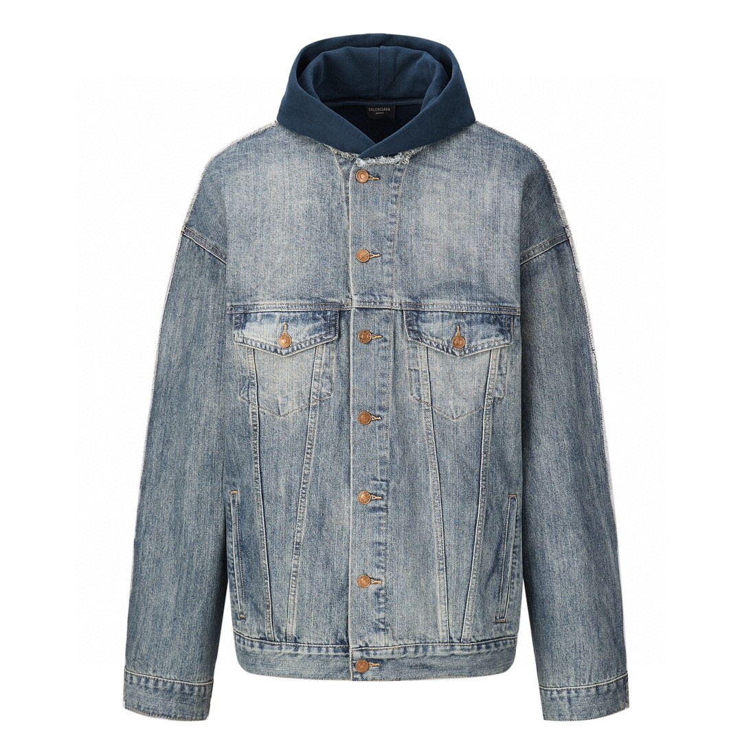 Balenciaga 巴黎世家 两件套 拼接连帽牛仔外套 卫衣 夹克 秋冬 蓝色