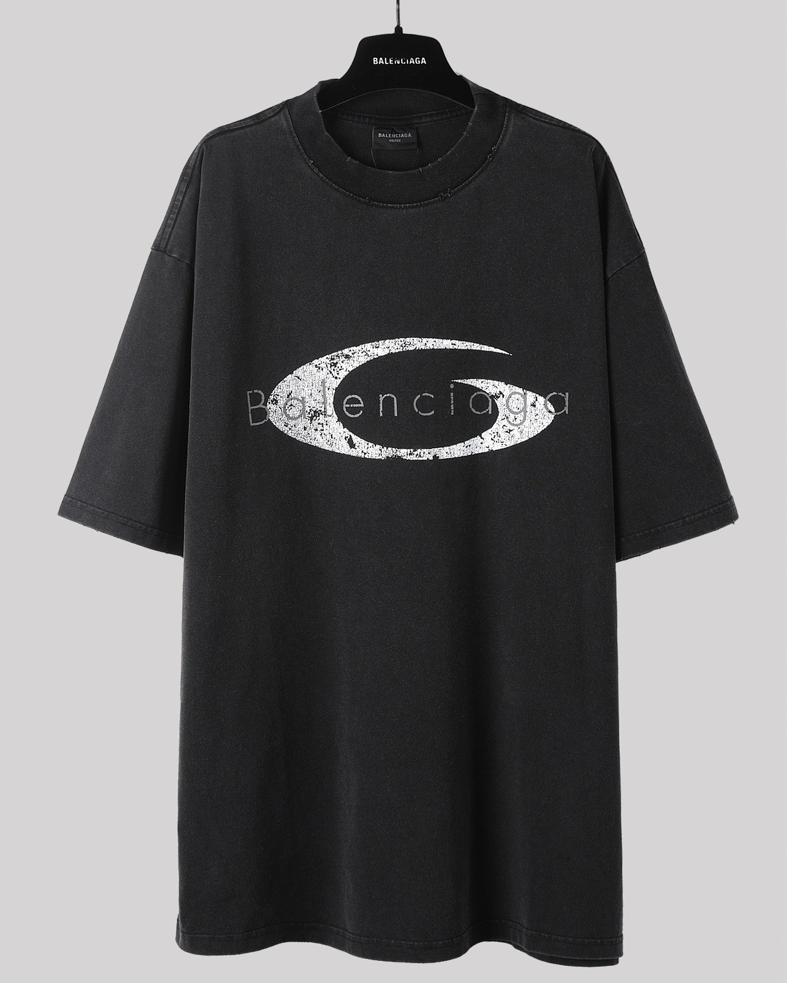 Balenciaga 巴黎世家 字母logo印花 做旧破洞短袖 T 恤 圆领 夏季 黑色 787358TQVG11569