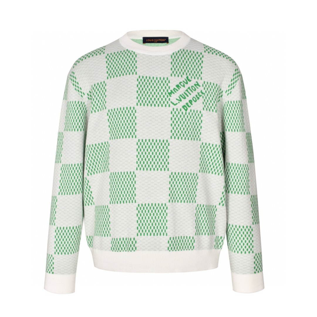 LOUIS VUITTON 路易威登 棋盘格字母logo圆领毛衣 长袖 绿色 1AFJHF
