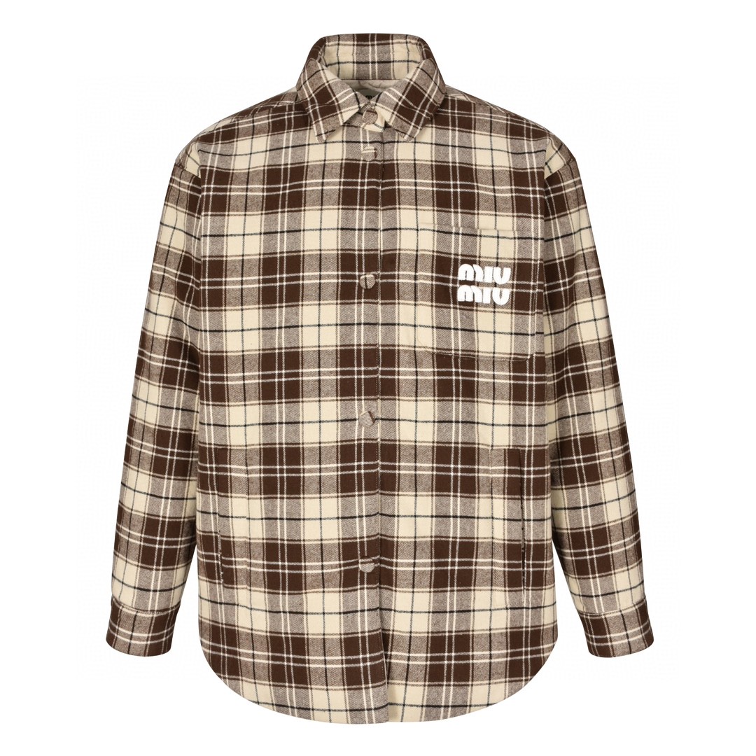 MIU MIU 缪缪 法兰绒格纹徽标字母logo衬衫 棉服 外套 长袖 棕色 ML8551-5PQ-F03KK