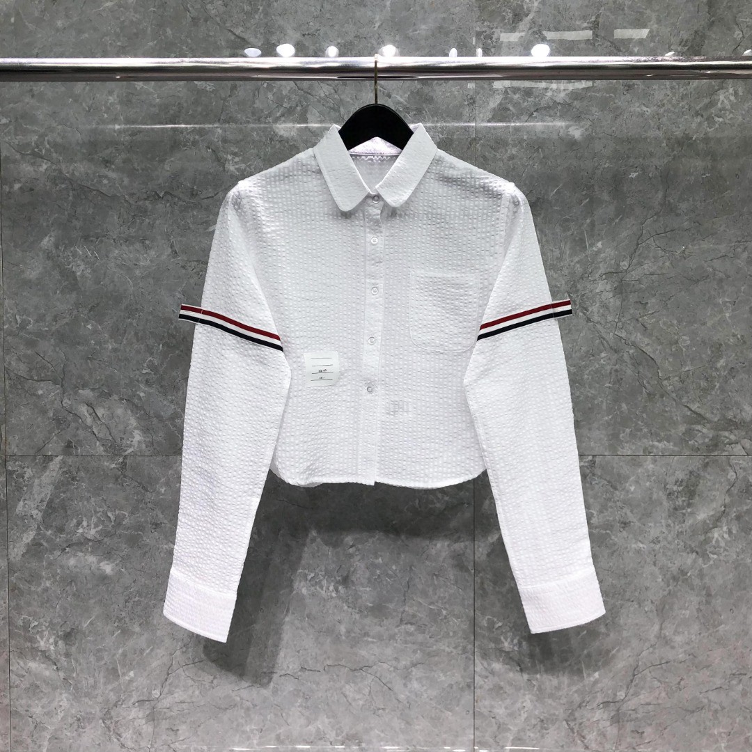 THOM BROWNE 双袖织带泡泡纱短款衬衫 外套 长袖 女款 白色
