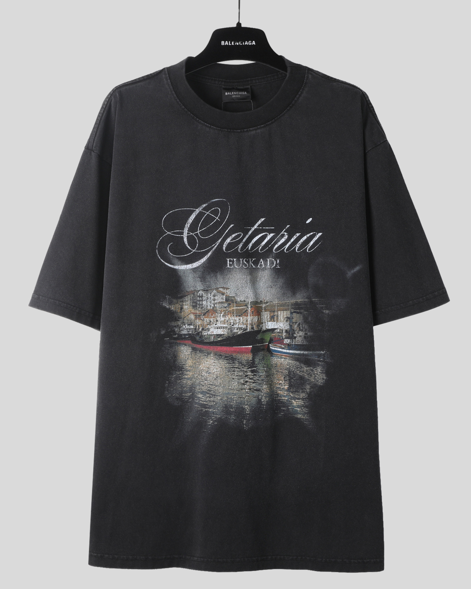Balenciaga 巴黎世家 吉塔里亚小镇 印花短袖 T恤 圆领 短款 夏季 黑色A5 811688TRVQ41041