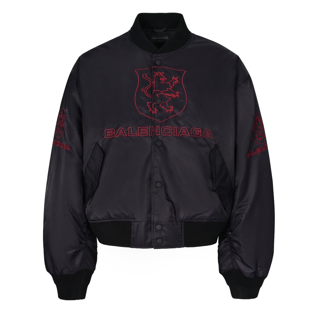 Balenciaga 巴黎世家 Lion Club Varsity SS25 立领单排扣飞行员夹克 棒球服 外套 长袖 黑色 814123TRO511000