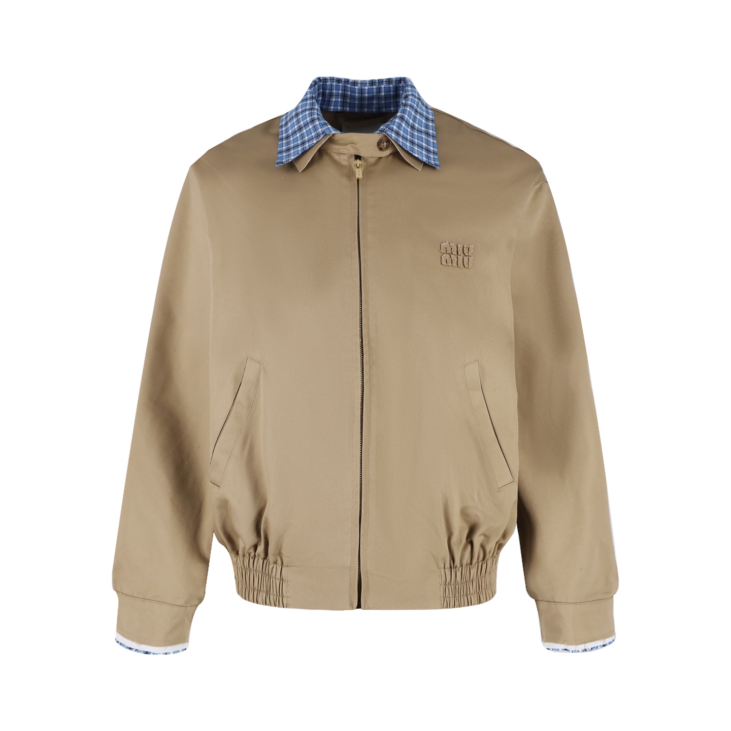 MIU MIU 缪缪 logo徽标可拆卸格纹领子拉链飞行员夹克 外套 长袖 B5 ML1216-1UPX-F0065-S-OOO