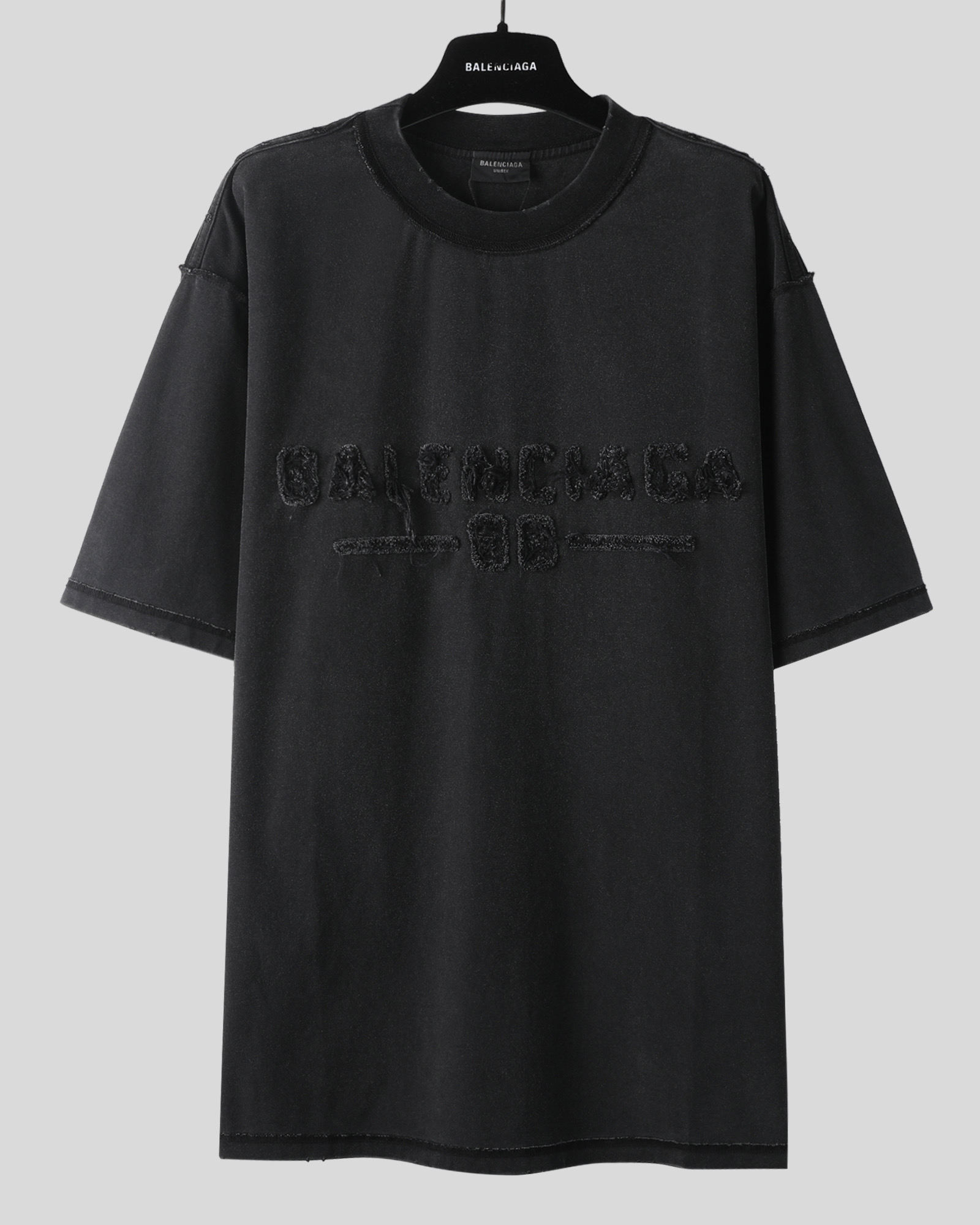 Balenciaga 巴黎世家 贴布刺绣 印花短袖 T恤 圆领 短款 夏季 黑色A5 822441TSVA21041