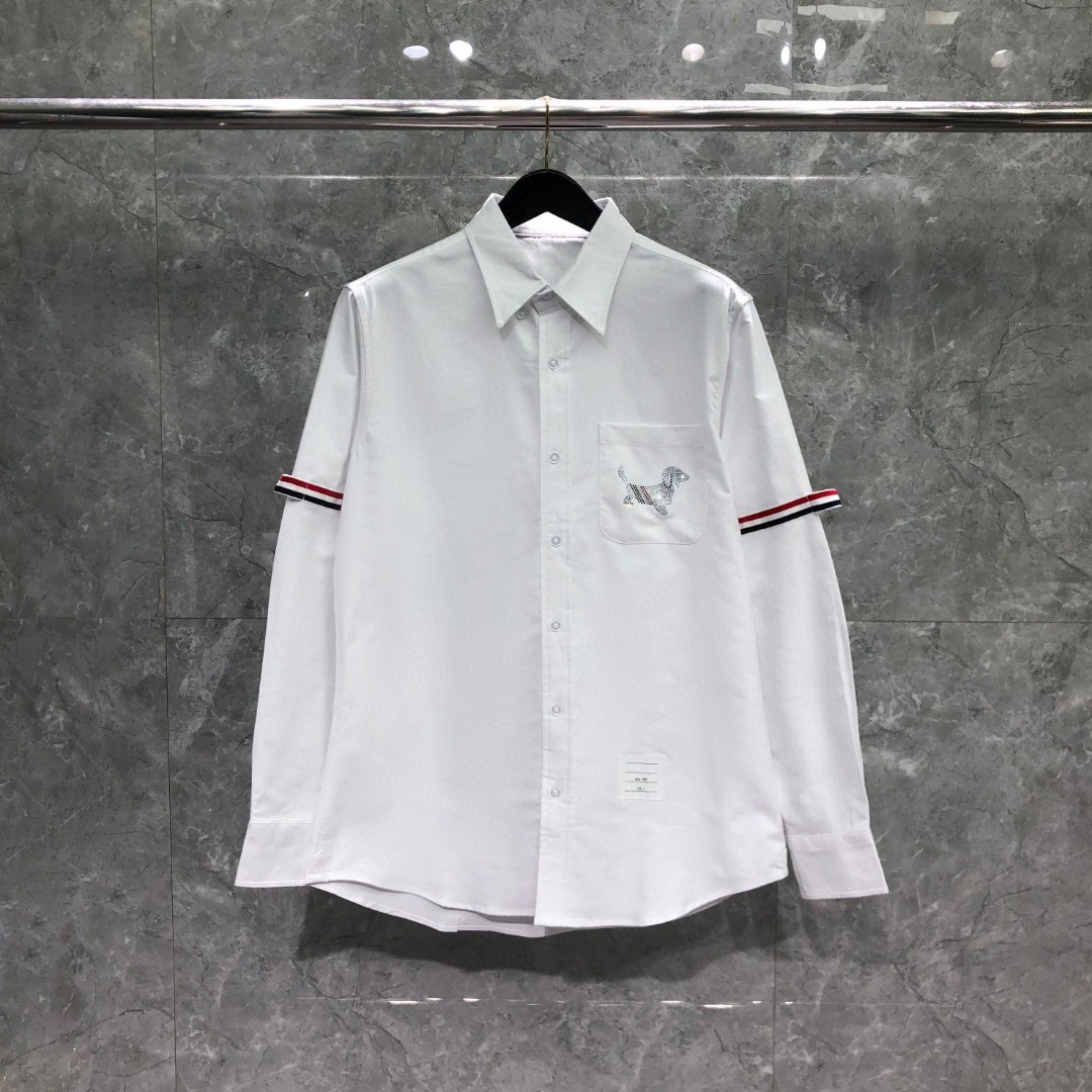 THOM BROWNE 双袖织带口袋烫钻小狗图案单排扣衬衫 外套 长袖 白色
