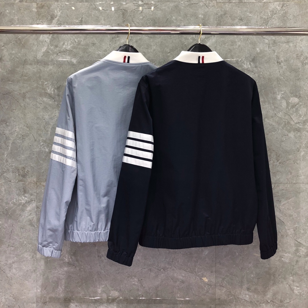 THOM BROWNE 经典四杠拉链棒球服夹克 外套 长袖 灰色 蓝色
