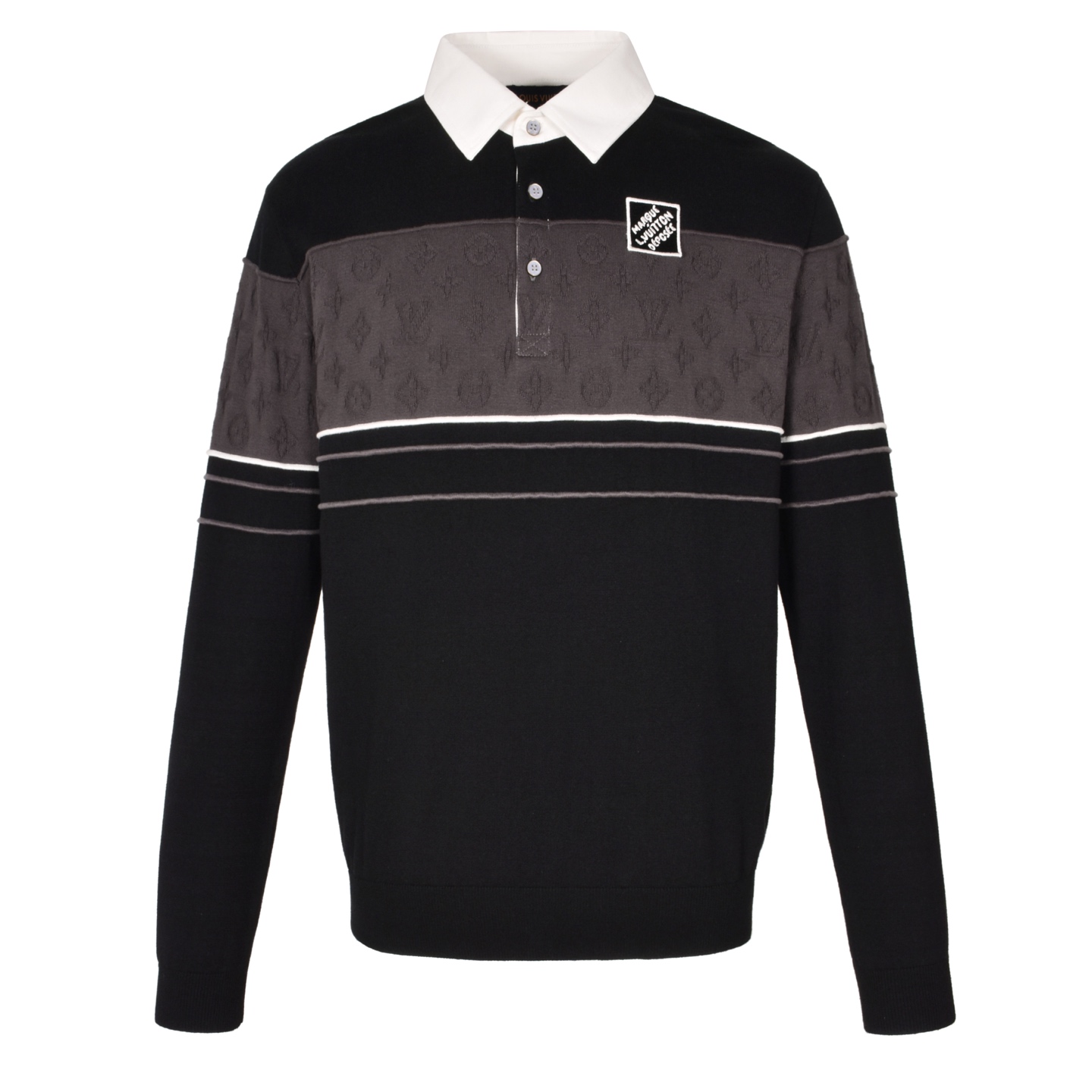 LOUIS VUITTON 路易威登 LV 拼色提花logo 针织 polo衫 外套 秋冬 凤搂 黑灰B0