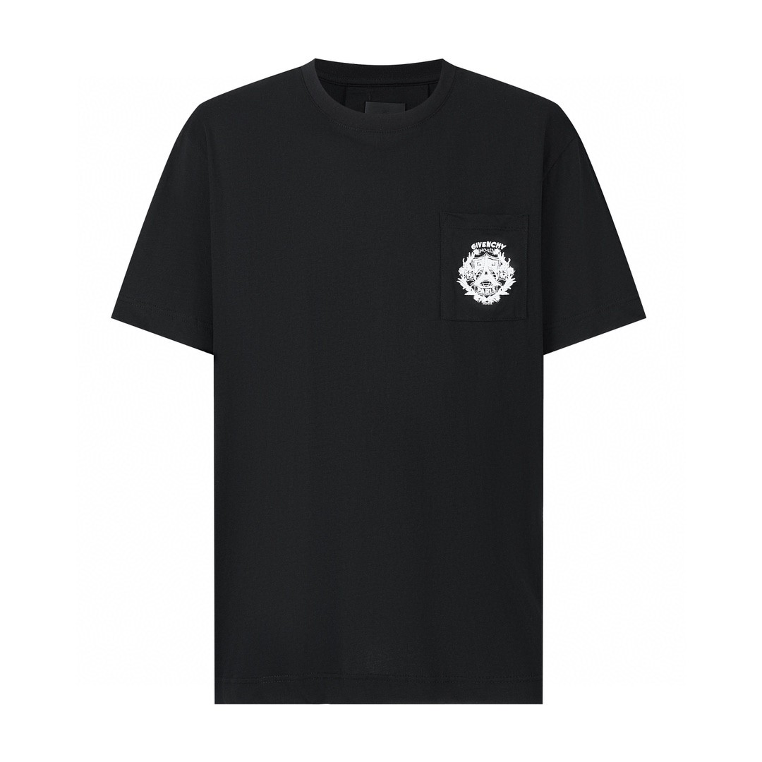 Givenchy 纪梵希 胸口口袋刺绣印花 T恤 短袖 套头 夏款 黑色 BM71G23YAB-001