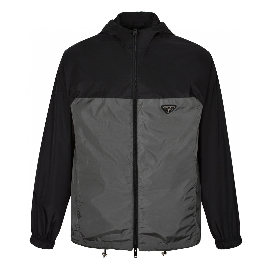 PRADA 普拉达 拼色logo徽标拉链连帽冲锋衣 夹克 外套 黑灰色 SGC601-1WQ9-F0N5A-S-BOO
