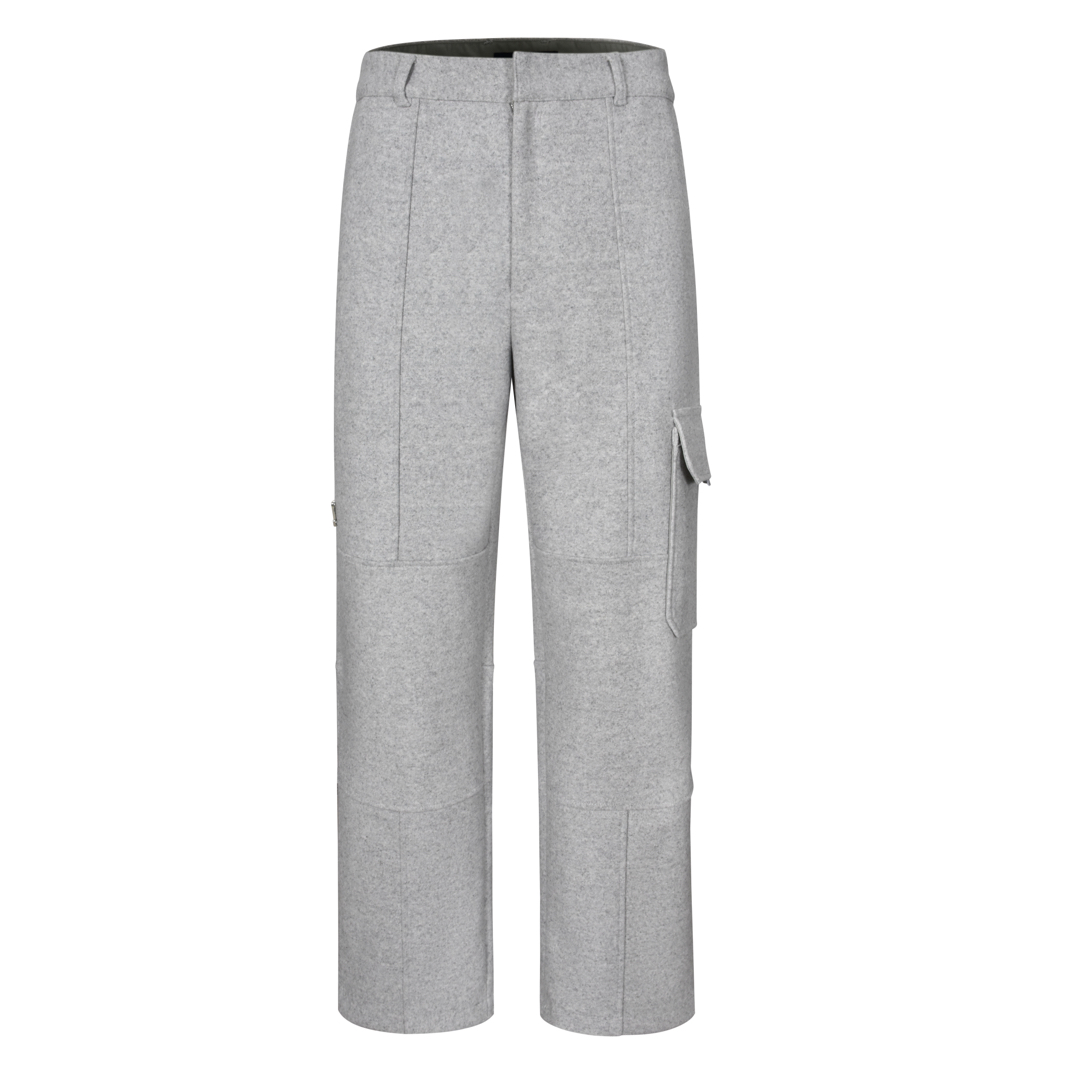 LOUIS VUITTON FW24 路易威登 纯色徽标羊毛长裤 休闲裤 裤子 灰色 1AGJLJ