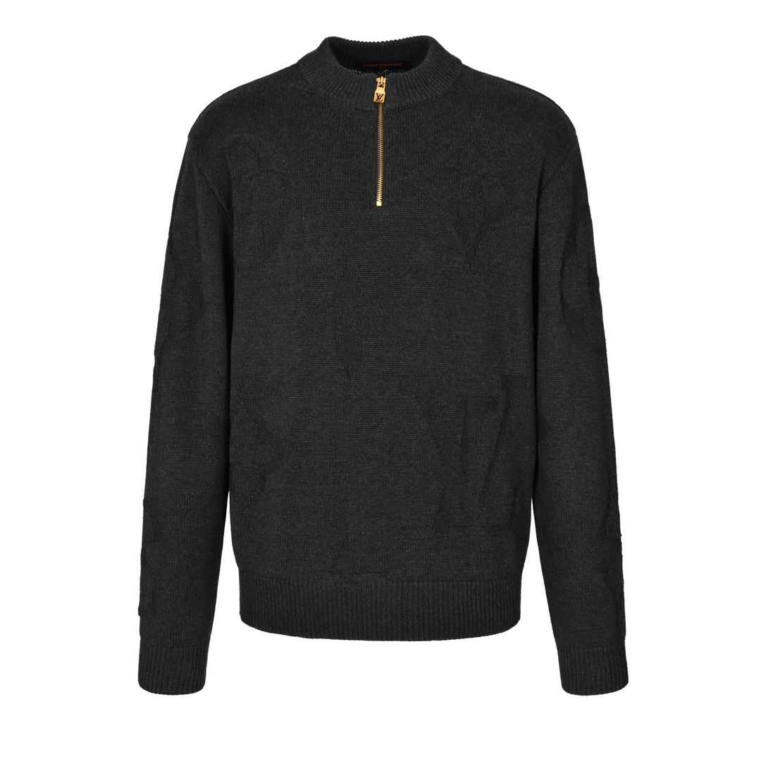 LOUIS VUITTON 路易威登 暗纹提花半拉链 毛衣 外套 深灰色 B0 1AFXY5