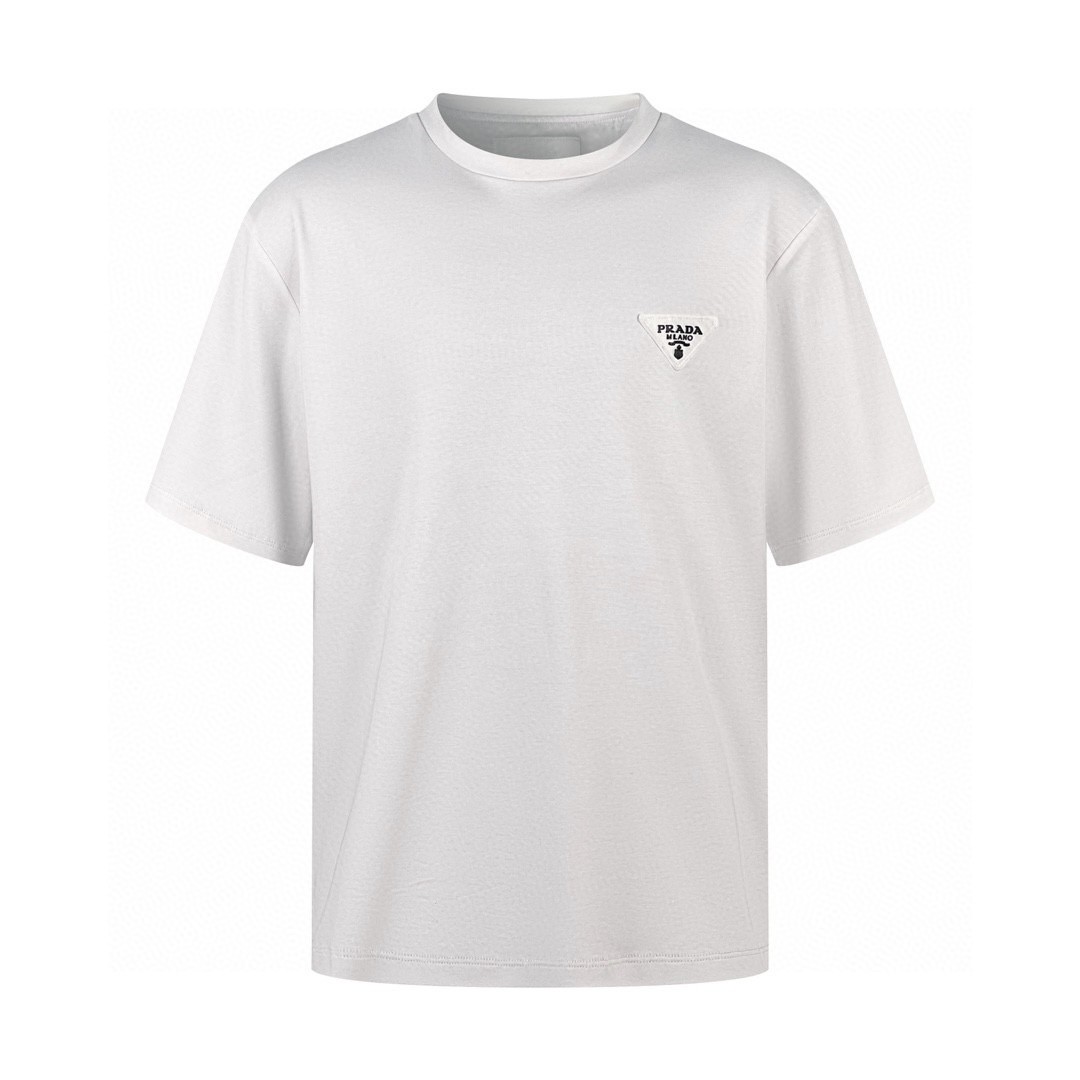 PRADA 普拉达 纯色三角徽标圆领 短袖 T恤 男女同款 白色