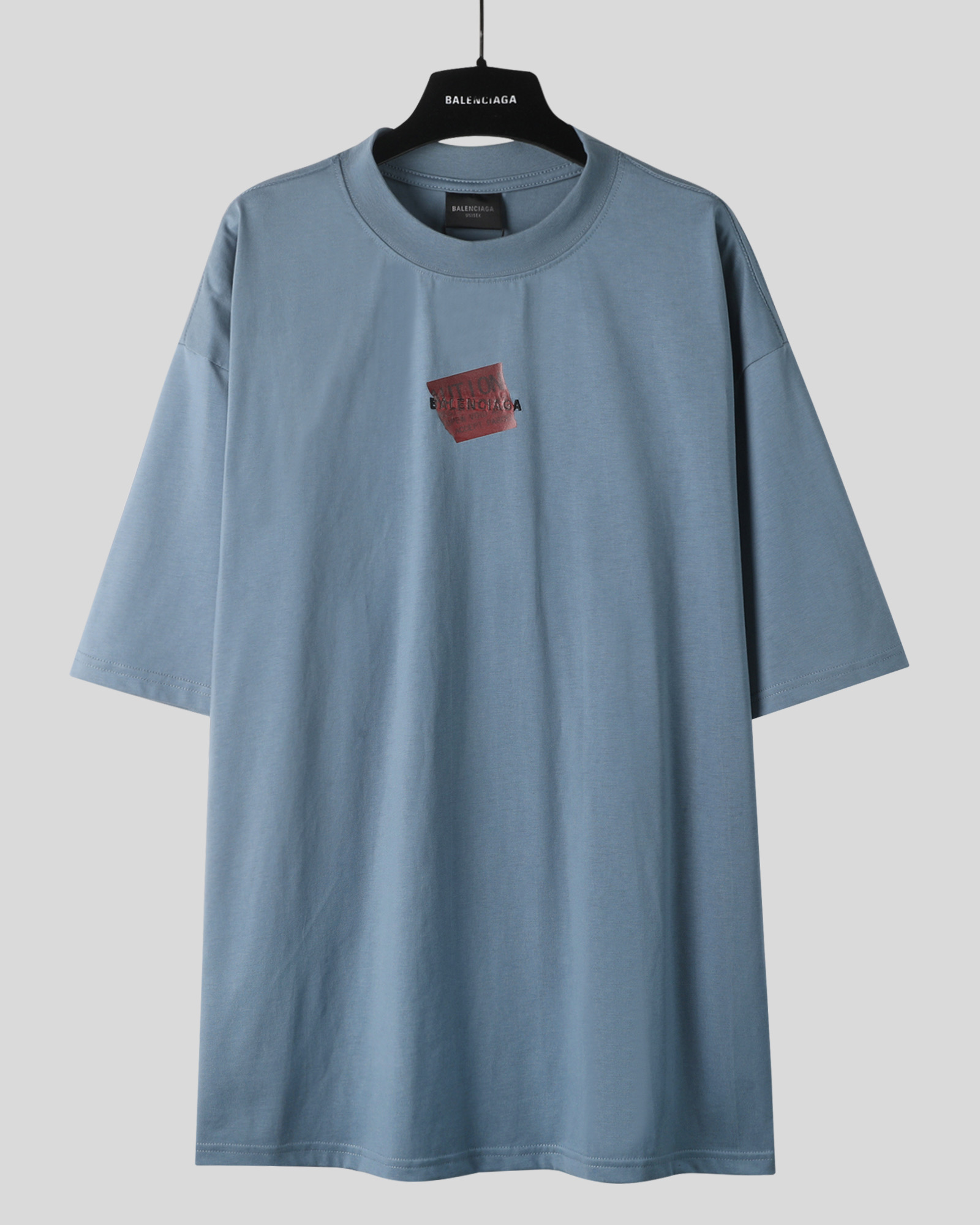 Balenciaga 巴黎世家 刺绣胶带 印花短袖 T恤 圆领 短款 夏季 蓝色A5 764235TSVG28704
