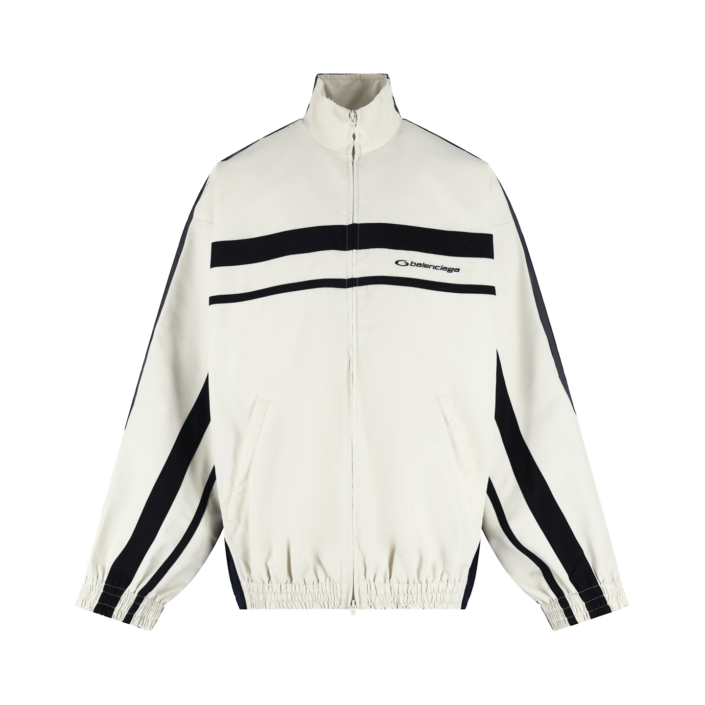 Balenciaga 巴黎世家 撞色拼接双头拉链立领外套 夹克 长袖 白色 黑色 C0 831363TRO319000